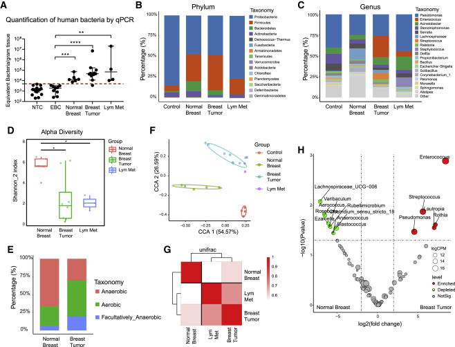 人類BT保守菌群圖譜在人類乳腺癌中,原發(fā)腫瘤和轉(zhuǎn)移部位之間的微生物群聯(lián)系尚不清楚。通過采集伴有配對(duì)腫瘤相鄰正常乳腺組織和淋巴結(jié)轉(zhuǎn)移的人BT組織,通過16S測(cè)序分析其微生物菌群組成。這些數(shù)據(jù)表明,小鼠BT和人類BT具有相似的微生物群落結(jié)構(gòu)和動(dòng)態(tài),表明人類BT的微生物群可能在人類癌癥的發(fā)病和發(fā)展中發(fā)揮保守的作用。
